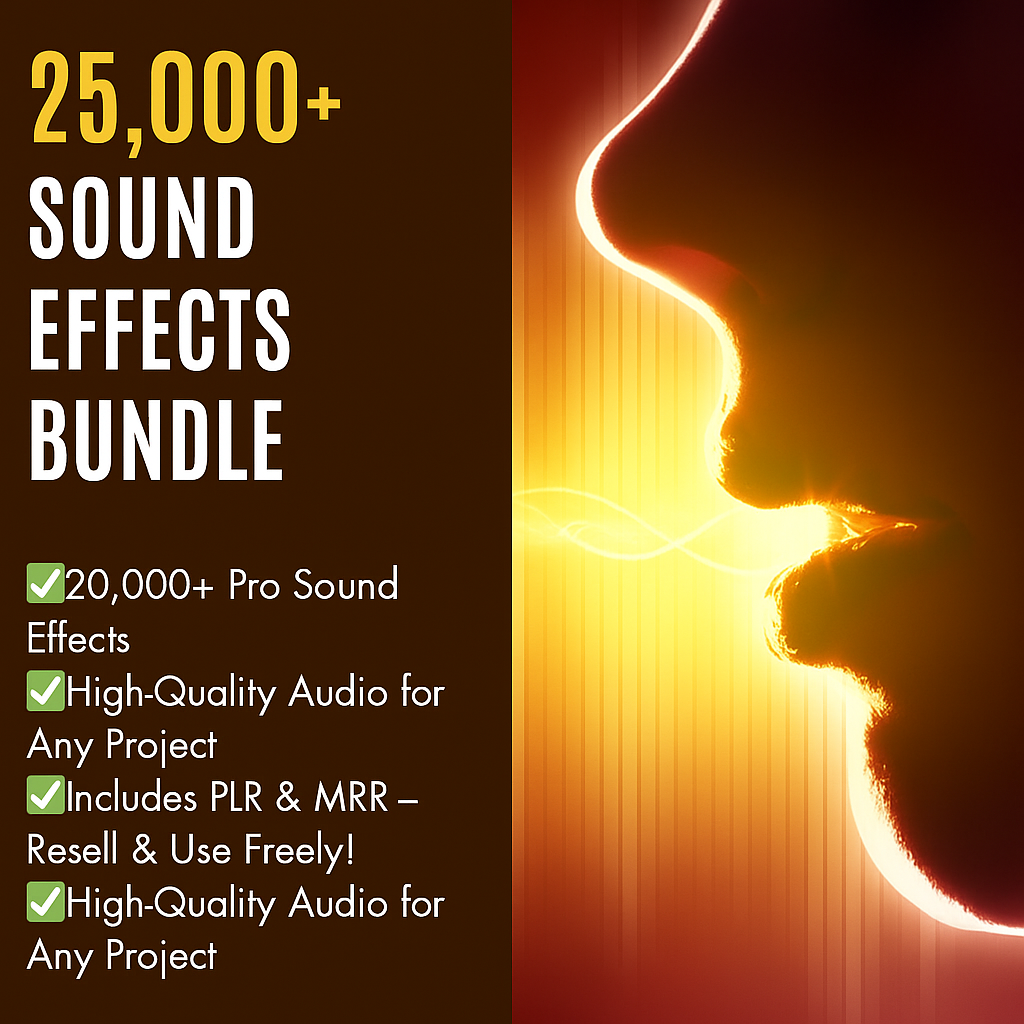 Upgrade your videos and creative projects with 25,000+ premium sound effects. Perfect for editors, creators, podcasters, filmmakers, and digital product sellers. Includes full PLR + MRR + Resale Rights — use the sounds in your projects or resell the full pack for 100% profit.